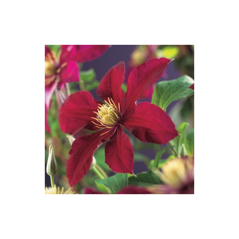 De Clematis 'Niobe' is een grootbloemige klimplant. Deze Bosrank, de Nederlandse naam, kenmerkt zich met een rijke en lange bloei in de zomermaanden. Van juni tot aan augustus verschijnen er prachtige paarsrode bloemen aan de klimplant. Ze hebben een diameter van zo'n tien centimeter. In de bloemen zie je een mooi geel hart waar ook bijen en vlinders gek op zijn.