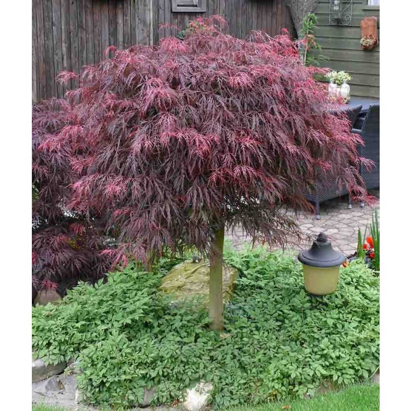 De Acer palmatum 'Garnet' is een prachtige, paarsrode Japanse esdoorn met diep ingesneden blad. Deze esdoorn groeit voornamelijk in de breedte; de volgroeide hoogte van deze plant is zo'n 150 cm en de volgroeide breedte 250 cm. De Acer is een langzame groeier en dus duurt het een aantal jaar voordat je een boom van dit formaat in je tuin hebt staan. De Garnet is geschikt om te combineren met andere heesters, maar ook als solitair komt de esdoorn goed tot zijn recht. De hoge sierwaarde van het kleurrijke blad maakt deze heester tot een parel voor het oog!