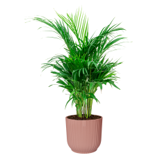 De Areca Lutescens in brengt met zijn vederachtige en heldergroene bladeren een tropische sfeer in huis! De palm bestaat uit meerdere kleinere palmpjes die samen in de pot zitten en bij elkaar groeien. Zorg ervoor dat de grond altijd vochtig is en dat ook de kleine palmpjes van water worden voorzien. De palm wordt compleet opgemaakt geleverd in de elegante Elho Vibes pot.