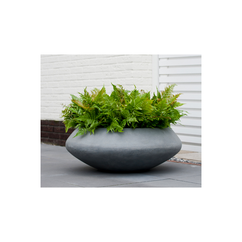 De in Nederland geproduceerde Fiberstone sierpotten zijn gemaakt van Fiberstone en hebben een natuurstenen uiterlijk. De pot is licht van gewicht en kan zowel binnen als buiten worden gebruikt. De pot is dan ook vorst- en UV-bestendig. Bij gebruik buiten moet er wel nog een drainage gat worden gemaakt. Bij gebruik binnen is een inzethoes verplicht en een floorprotector aan te raden.
