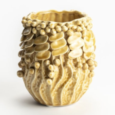 De Cahors vaas taupe is een handgemaakte aardewerken vaas met glazuurafwerking in een zachte crème/taupekleur, geïnspireerd door vormen uit de natuur en het bos.