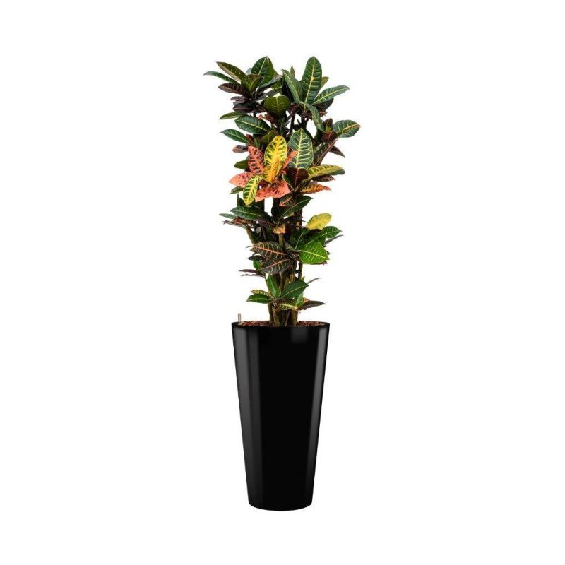 De Croton Variegatum Petra, ook wel bekend onder de naam Wonderstruik, is een zeer geliefde kamerplant. De plant past zich goed aan in verschillende omgevingen, maar floreert het meest op een lichtzonnige plaats. De combinatie met de Runner pot maakt het verzorgingsproces eenvoudig. De Runner pot is namelijk voorzien van een watermeter, waardoor u gemakkelijk kuns aflezen wanneer de plant weer water nodig heeft.