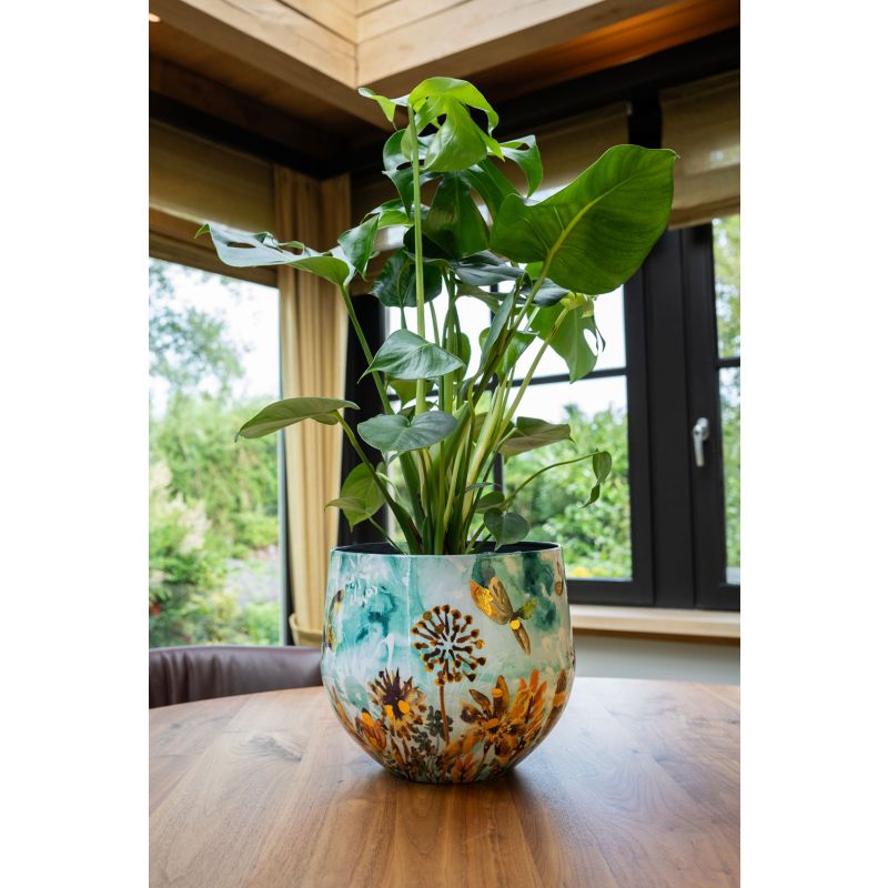 De nieuwe collectie van Ter Steege zijn sierpotten die ontworpen zijn door Lammie van Wieringen. De metalen potten zijn allen uniek en geinspireerd op thema's uit de natuur. De plantenbakken zijn een echte eyecatcher in elke ruimte en mooi om op te maken met een plant of kunstbloem. Let wel op; de potten zijn niet waterdicht en om roesten te voorkomen is een inzethoes aan te raden. De set bestaat uit de volgende 3 sierpotten: