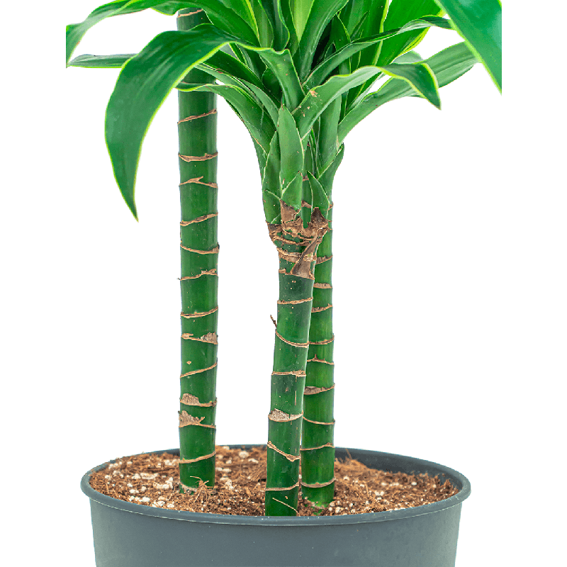 De Dracaena kent haar oorsprong in Afrika en in de tropen van Midden-Amerika en Azië. De Dracaena, ook wel Drakenplant of Drakenbloedboom genoemd, is onderdeel van de Dracaenaceae familie. Zij dankt haar naam aan de rode hars wat de plant afscheidt als er een snee in de stam of bladeren wordt gemaakt. In Nederland komen verschillende soorten veelal voor, zoals de Dracaena Marginata, Fragrans, Massangeana, Janet en Surculosa. Deze laatste heeft in plaats van strepen stippen op haar blad.