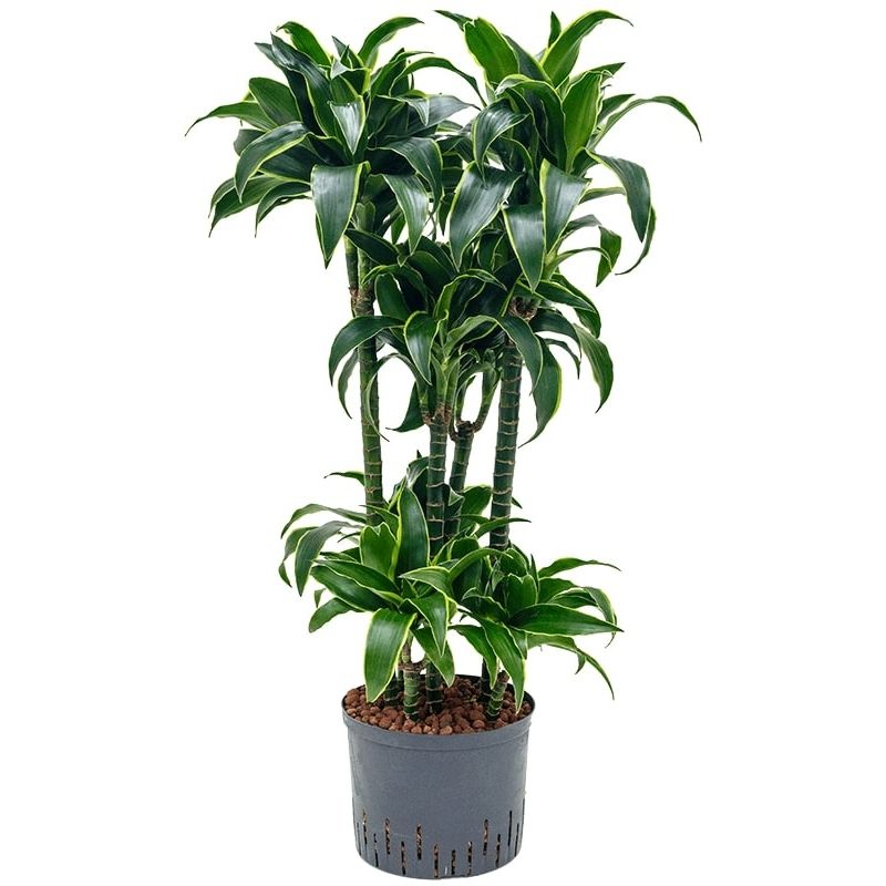 De Dracaena Fragrans is afkomstig uit Afrika, de tropen van Midden-Amerika en Azië. Fragrans verwijst naar de heerlijk geurende bloemen. Helaas, de plant zal in huis of kantoor niet snel gaan bloeien. Maar wees niet getreurd! De donkergroene bladeren met gele randen maken de plant een opvallende verschijning. Je zult lang genieten van deze Dracaena, hij kan namelijk een zeer hoge leeftijd behalen. Naast de Dracaena Fragrans zijn er nog veel meer soorten van de Dracaenaceae familie, zoals de Dracaena Marginata, Massangeana, Janet en Surculosa.