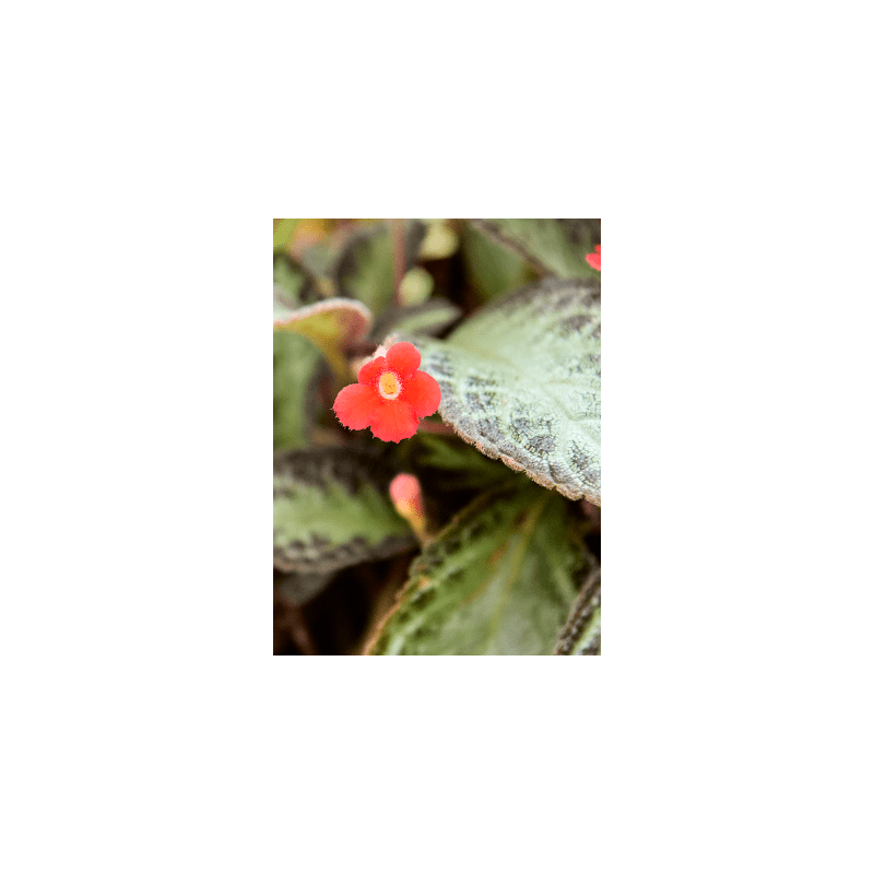 Episcia cupreata, ook wel bekend als de Vlamviool, is een prachtige en onderhoudsvriendelijke plant uit de familie Gesneriaceae. Deze tropische plant komt oorspronkelijk uit de regenwouden van Midden- en Zuid-Amerika en staat bekend om zijn opvallende, fluweelachtige bladeren en felgekleurde bloemen. De bladeren van de Vlamviool variëren in kleur van koperachtig rood tot donkergroen met zilveren markeringen, wat zorgt voor een levendig contrast. De buisvormige bloemen kunnen verschillende tinten hebben, waaronder rood, oranje en geel, en voegen een extra vleugje kleur toe aan elk interieur.