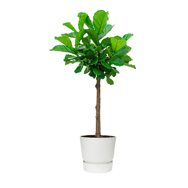 Deze prachtige Ficus Lyrata op stam, die ook wel tabaksplant genoemd wordt, wordt geleverd in de Elho Greenville sierpot. De Ficus behoort tot de Moraceae familie (Moerbeifamilie) en komt oorspronkelijk uit Afrika. De soorten die als kamerplant verkocht worden, komen echter vrijwel allemaal uit de regenwouden van Zuidoost-Azië. India, Thailand en Maleisië waar ze in het wild voorkomen. Ook komt de plant voor in Zuid-Amerika, Australië en andere delen van Azië. De plant kan in de vrije natuur tot wel 30 meter hoog worden. De Ficus heeft veel licht nodig. Zet de plant daarom op een lichte plek. De Elho Greenville pot heeft een modern en elegant design en is gemaakt van 100% gerecycled materiaal. Een ingebouwd waterreservoir zorgt ervoor dat u de plant niet continu water hoeft te geven.