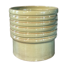 Gina Da Doom Reactive Grey Blue is een keramieken plantenbak met een geribbelde structuur en geglazuurde afwerking in een grijsblauwe tint. Alleen geschikt voor gebruik binnenshuis.