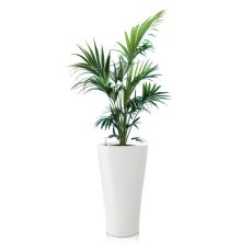 De populaire palm Kentia Howea, ook wel de Hollywood palm genoemd, komt oorspronkelijk van een eiland naast Australië. Het is een van de sterkste palmen die er zijn en de plant is makkelijk in verzorging. Dit wordt nog gemakkelijker met de Delta pot waarin de palm wordt geleverd. Deze pot beschikt namelijk over een geavanceerd watergeefsysteem, dat de hoeveelheid water naar de plant nauwlettend reguleert. Hierdoor krijgt de plant altijd de juiste hoeveelheid water. Een handige watermeter geeft aan wanneer het reservoir moet worden bijgevuld. Zet de plant in halfschaduw om optimaal van de palm te genieten.