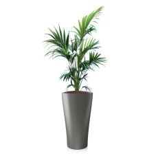 De populaire palm Kentia Howea, ook wel de Hollywood palm genoemd, komt oorspronkelijk van een eiland naast Australië. Het is een van de sterkste palmen die er zijn en de plant is makkelijk in verzorging. Dit wordt nog gemakkelijker met de Delta pot waarin de palm wordt geleverd. Deze pot beschikt namelijk over een geavanceerd watergeefsysteem, dat de hoeveelheid water naar de plant nauwlettend reguleert. Hierdoor krijgt de plant altijd de juiste hoeveelheid water. Een handige watermeter geeft aan wanneer het reservoir moet worden bijgevuld. Zet de plant in halfschaduw om optimaal van de palm te genieten.