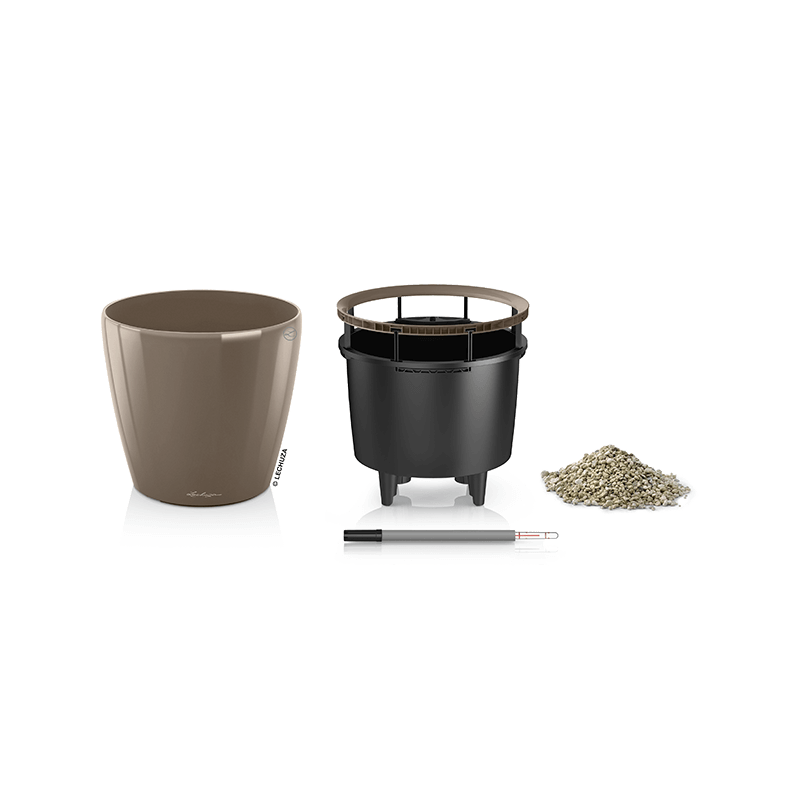 De Classico lijn van Lechuza bevat prachtige zelfwatergevende potten in verschillende kleuren en maten. Dankzij een geavanceerd watergeefsysteem, dat de hoeveelheid water naar de plant nauwlettend reguleert, zorgt deze bloempot voor een optimale bewatering. Hierdoor krijgt de plant altijd de juiste hoeveelheid water. Een handige watermeter geeft aan wanneer het reservoir moet worden bijgevuld. De bloempotten worden geleverd met een potgrondbewateringset inclusief binnenbak en watergever.