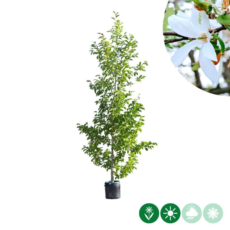 De Magnolia Kobus is een decoratieve boom die prachtig bloeit in het voorjaar. De boom heeft dan prachtige tulpvormige bloemen die wit zijn van kleur. Het blad van de boom is glanzend en groen van kleur. In de herfst kleurt het blad geelbruin. Het blad heeft een ovale vorm en voelt lederachtig aan. De boom is redelijk winterhard en geschikt voor in iedere tuin. Snoei de boom tussen november en april terug tot een eivorm.