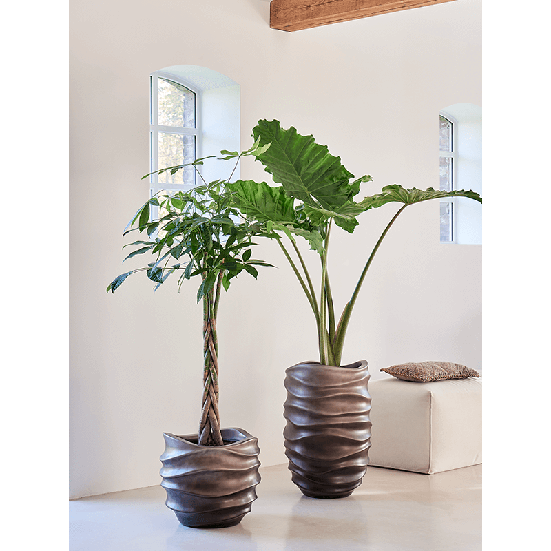 De Metallic Lee Couple is een chique pot met een elegante uitstraling. De pot van het merk Baq is een hoogwaardig kwaliteit plantenbak met elk een unieke uitstraling. De Metallic Lee potten hebben een subtiel hand gespoten kleurverloop dat voor een harmonieuze uitstraling zorgt. De pot is gemaakt van van Polyresin, een sterk materiaal dat uit gemalen steen en hars bestaat. Deze pot past mooi in huis of op kantoor door zijn exclusieve uitstraling. Bij de plantenbak zit een uitneembare waterdichte binnenbak, hierdoor hoef je de pot niet volledig te vullen met aarde en blijft hij licht van gewicht.