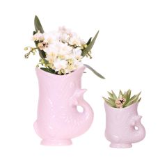 De Planten duo Yona oranje is een speelse en stijlvolle combinatie van twee verschillende formaten Yona potten in een warme, levendige oranje kleur. In de 9 cm pot schittert een elegante witte orchidee, terwijl de 6 cm pot is gevuld met een charmante en onderhoudsvriendelijke succulent. Samen vormen ze een harmonieus geheel dat direct een zomers en mediterraan gevoel oproept.
